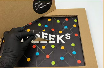 Стенд для компании «LOGEEKs». Выполнен из семислойного гофрокартона.