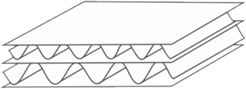 состоит из двух плоских и одного гофрированного слоев.
